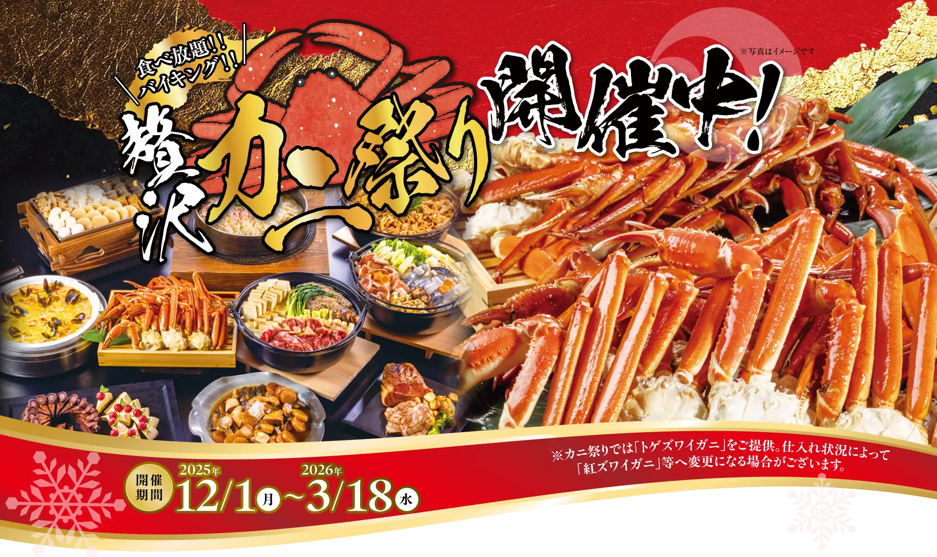 バリエーション豊かな3種の寄せ鍋が登場! ピリ辛がクセになる「鶏チゲ鍋」、旨みたっぷり「海鮮和風だし鍋」、甘辛だれが食欲そそる「牛すき焼鍋」。旬の食材をたっぷり入れて、だしに旨みがじんわり染み出す…その美味しさは、最後の“しめ”まで続きます。 鶏チゲ鍋 海鮮和風だし鍋 牛すき焼鍋 冬の味覚を堪能する、あったかごちそうメニュー 寒い季節にぴったりの、心も体も温まる料理を取り揃えました。海の幸、旬の野菜、こだわりの出汁…素材の旨みを最大限に引き出した、冬ならではの贅沢な味わいをご堪能ください。 蟹釜飯 蟹のほぐし身をたっぷり使った贅沢な釜飯蟹の旨みを余すところなく味わえる熱々ご飯でお口も心もホクホクに。 海の幸 クリームグラタン 魚介の旨みと、まろやかなホワイトソースが絶妙に絡み合う濃厚グラタン。生クリームとバターで仕上げたコク深い味わいが、寒い季節にぴったりです。 あったかおでん 昆布と鰹節の澄んだ出汁に、薄口醤油と塩で上品に味付け。牛すじ、たこ、厚揚げ、がんもどきなど、素材の風味を生かした具材がじっくりと煮込まれ、心までほっとする味わいです。 蟹釜飯 蟹のほぐし身をたっぷり使った贅沢な釜飯蟹の旨みを余すところなく味わえる熱々ご飯でお口も心もホクホクに。 あったかおでん 昆布と鰹節の澄んだ出汁に、薄口醤油と塩で上品に味付け。牛すじ、たこ、厚揚げ、がんもどきなど、素材の風味を生かした具材がじっくりと煮込まれ、心までほっとする味わいです。 海の幸 クリームグラタン 魚介の旨みと、まろやかなホワイトソースが絶妙に絡み合う濃厚グラタン。生クリームとバターで仕上げたコク深い味わいが、寒い季節にぴったりです。 ポークグリル ハーブスパイスのふくよかな芳香が特徴のスパイスは、豚肉とも相性がよい風味。お肉の脂がもつ甘みも格別です。 あったか ぶり大根煮つけ 冬に旬を迎える寒ブリの脂の旨みと、甘みが増した冬大根を醤油ベースの出汁でじっくり煮込んだ、冬の定番煮物。 その他の冬メニュー 「国産牛」のビーフステーキ「猟師風鶏肉の煮込み」 カチャトーラ湯葉とちりめんの山椒サラダ旨みまろやか根菜の海老マヨサラダ四川風麻婆豆腐 など ※記載のメニューは仕入れ状況により変更する場合がございます。 ランチタイムのフードメニューのご提供は14:30まで、以降16時まではドリンク&スイーツTimeとなります。※営業時間は日によって変更する場合があります。 ランチタイムのフードメニューのご提供は14:30まで、以降16時まではドリンク&スイーツTimeとなります。※営業時間は日によって変更する場合があります。 心ときめくクリスマススイーツコレクション ブッシュ・ド・ノエル、 シュトーレン、 いちごのショートケーキなど、聖なる夜にぴったりの、とっておきのスイーツをご用意しました。